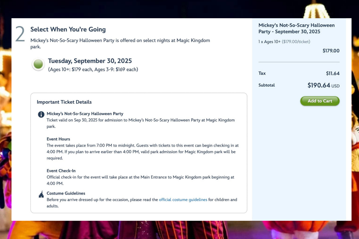 Guests with tickets can enter the park as early as 4 PM, with the party running from 7 PM until midnight. Expect all your favorite Halloween fun, including the Boo-to-You Parade, exclusive character meet and greets, trick-or-treating, and spooky snacks made just for the event.